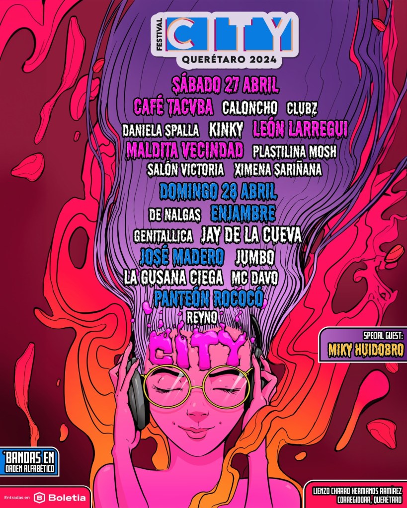 En su tercera edición el Festival City no deja de sorprender con dos días de música y con bandas ya conocidas, recordemos que este festival se divide en dos días 27 y 28 de Abril, el cual se llevara a cabo en Lienzo Charro Hermanos Ramírez, Querétaro.