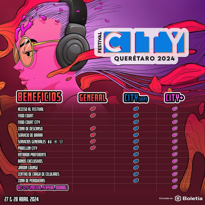 El festival contará con un solo escenario y tres tipos de boletos General, City(VIP) y City+.