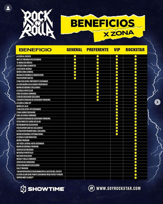 El evento cuanta con varias zonas, así mismo con varios beneficios, les dejamos cada uno de estos así como el mapa de zonas, tuvieron una fase tempranera antes del anuncio del cartel que fue Sold Out de inmediato, actualmente están la fase 2 pero te recomendamos comprar lo antes posible tu boleto para asegurar tu lugar en este gran concierto.
